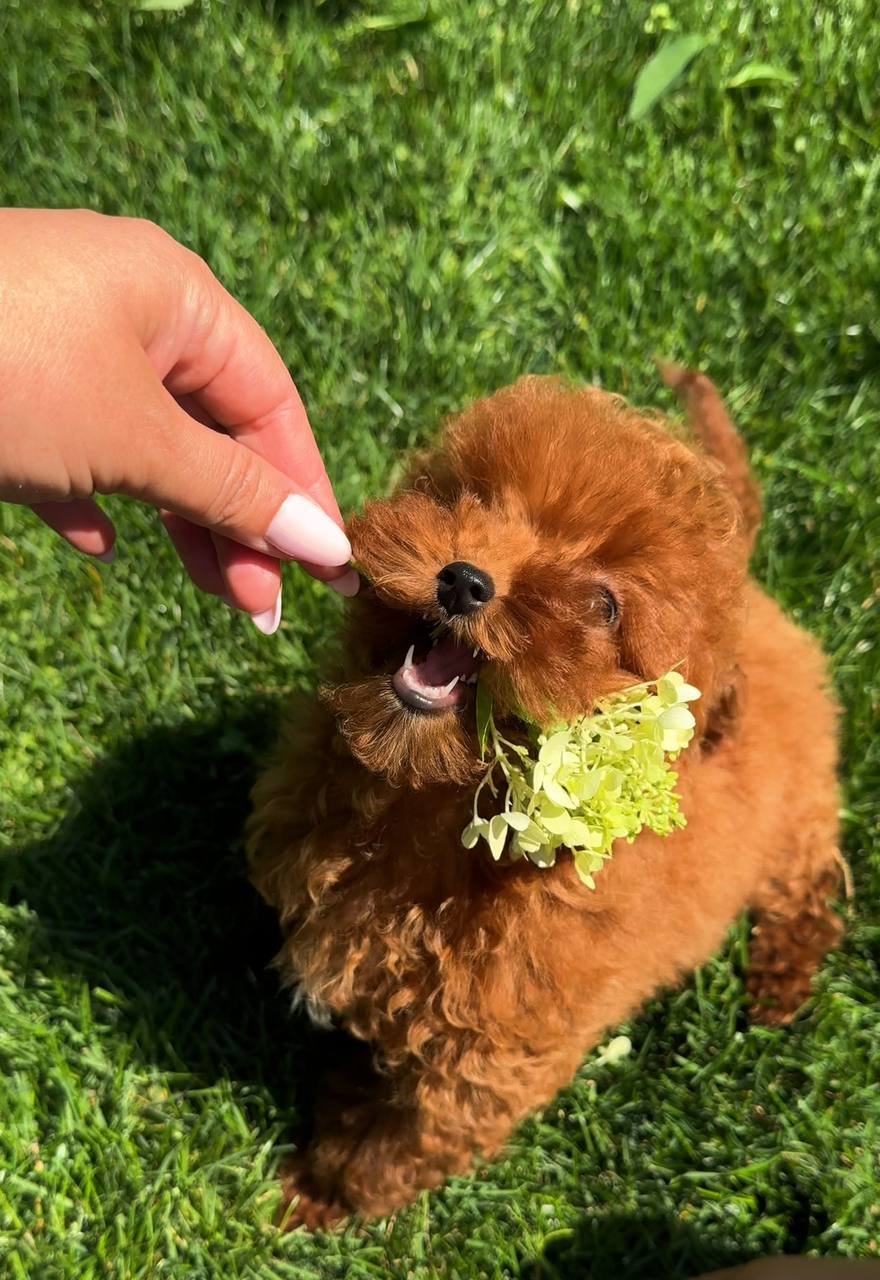 Description: Meet Russet, a ruddy bundle of happiness waiting for his forever family! This incredibly cute boy boasts vibrant, non-shedding, odorless fur, expressive eyes, and an adorable compact face. With a golden character—cheerful, playful, and loving—he adores chase games, playing with kids and pets, and showering affection with romantic kisses. Smart and attentive, he’s nearly ready for his first dog training sessions!